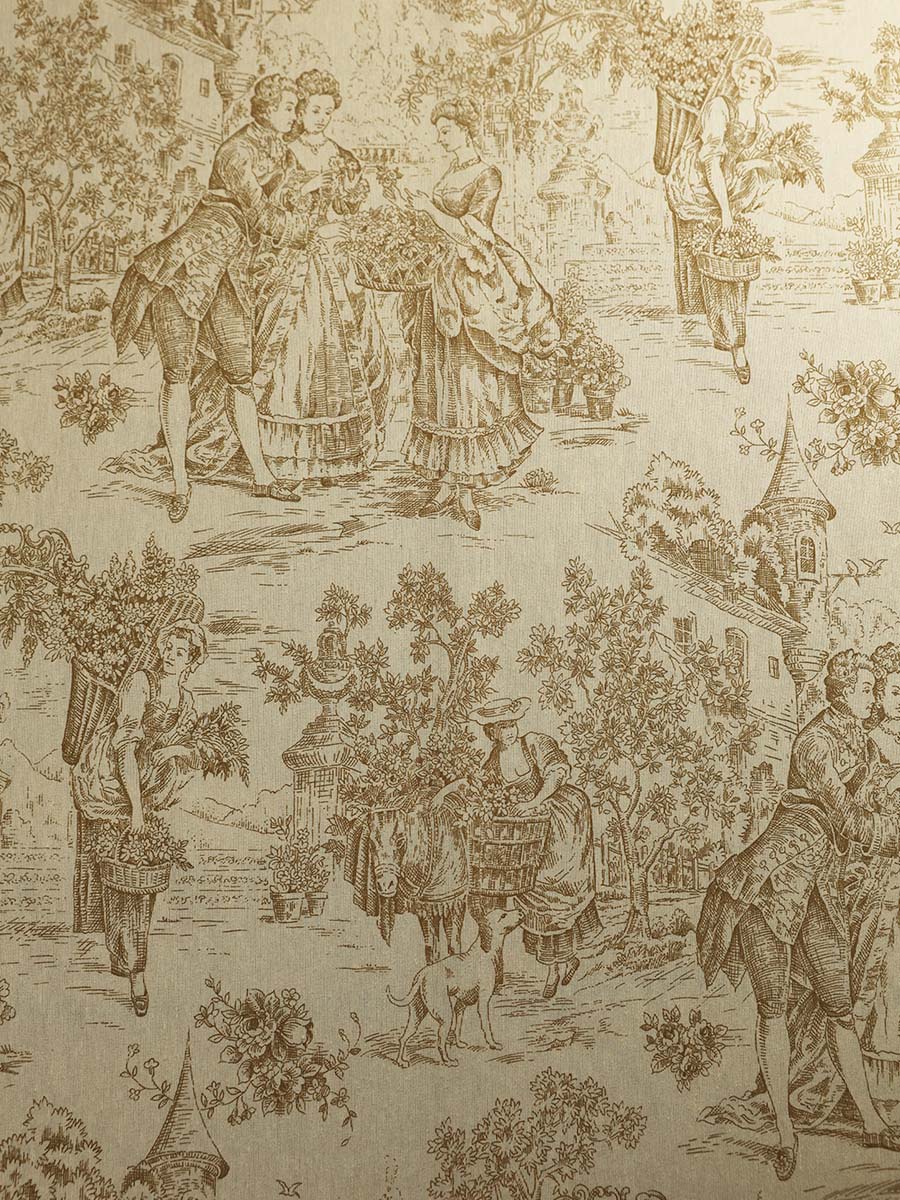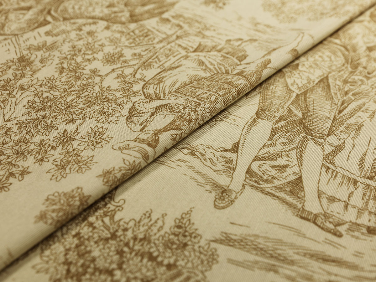 Ткань портьерная лен "Старобытная Франция"молочный, бежевый, коричневый , высотная 2, 80м
