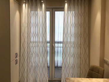 Пошив штор на тесьме в спальне в стиле минимализм